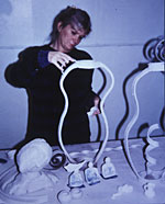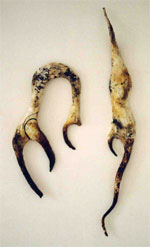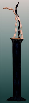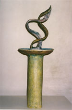 I tried extreme shapes with porcelain at Bechyne in the Czech Republic where overfiring was the rule not the exception at the time. The clay emerged from the kiln frozen in themiddle of a meltdown above: "Twisted" and "Old Flames".