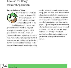 Thanks to support of Sonoma Tile (CA) Jon Willilams and I collaborated on early stage research on reclaim and recycling industrial ceramic and paper waste in 1997-1998.