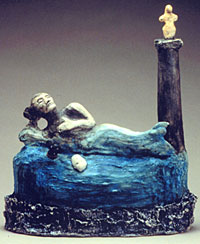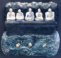 paperclay ceramic with sculptures embedded and multiple fires 18" (W) x 20" (H) x5" (D)